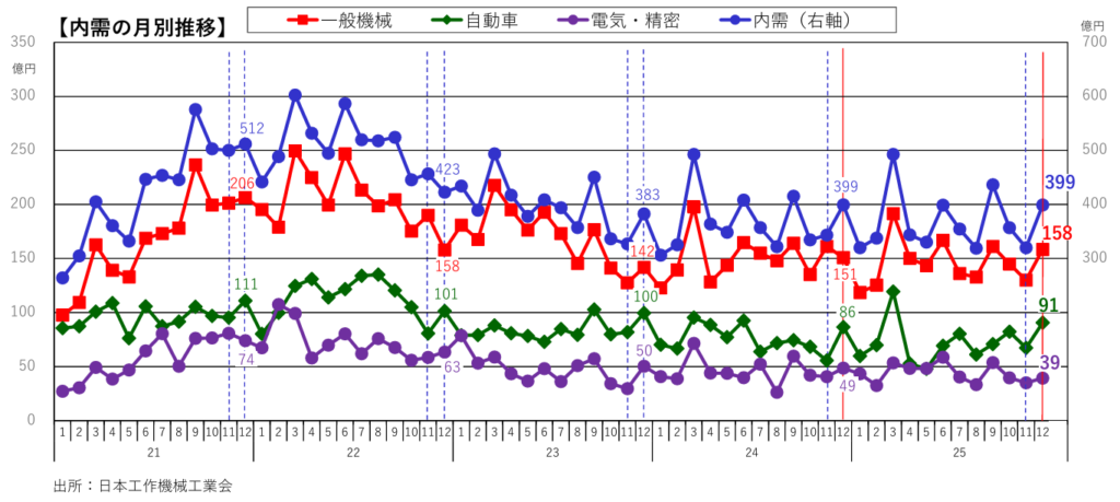 内需「一般機械」(産業機械と金型)の直近5年間の受注動向