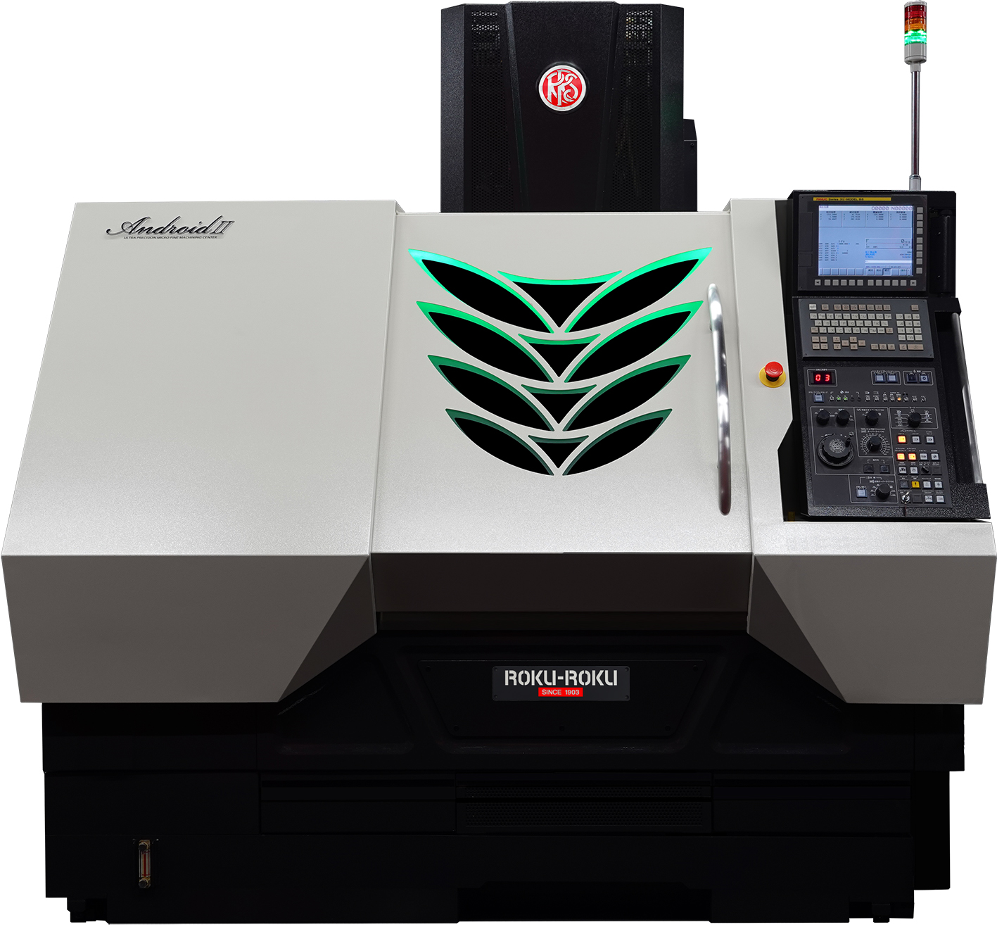 機体の温度管理用インターフェース等を装備し、機械が持つ潜在能力を最大限に引き出す「オペレータ」の介入機能を強化したAdvanced M-Kit を搭載。更にお客様から寄せられた要望を反映し、シナジー効果の徹底によりRaシングルナノの高面品位加工を実現する「type-s」モデルもラインアップした次世代機「AndroidⅡ」に、高精度微細5軸加工を可能にする傾斜円テーブルを搭載。