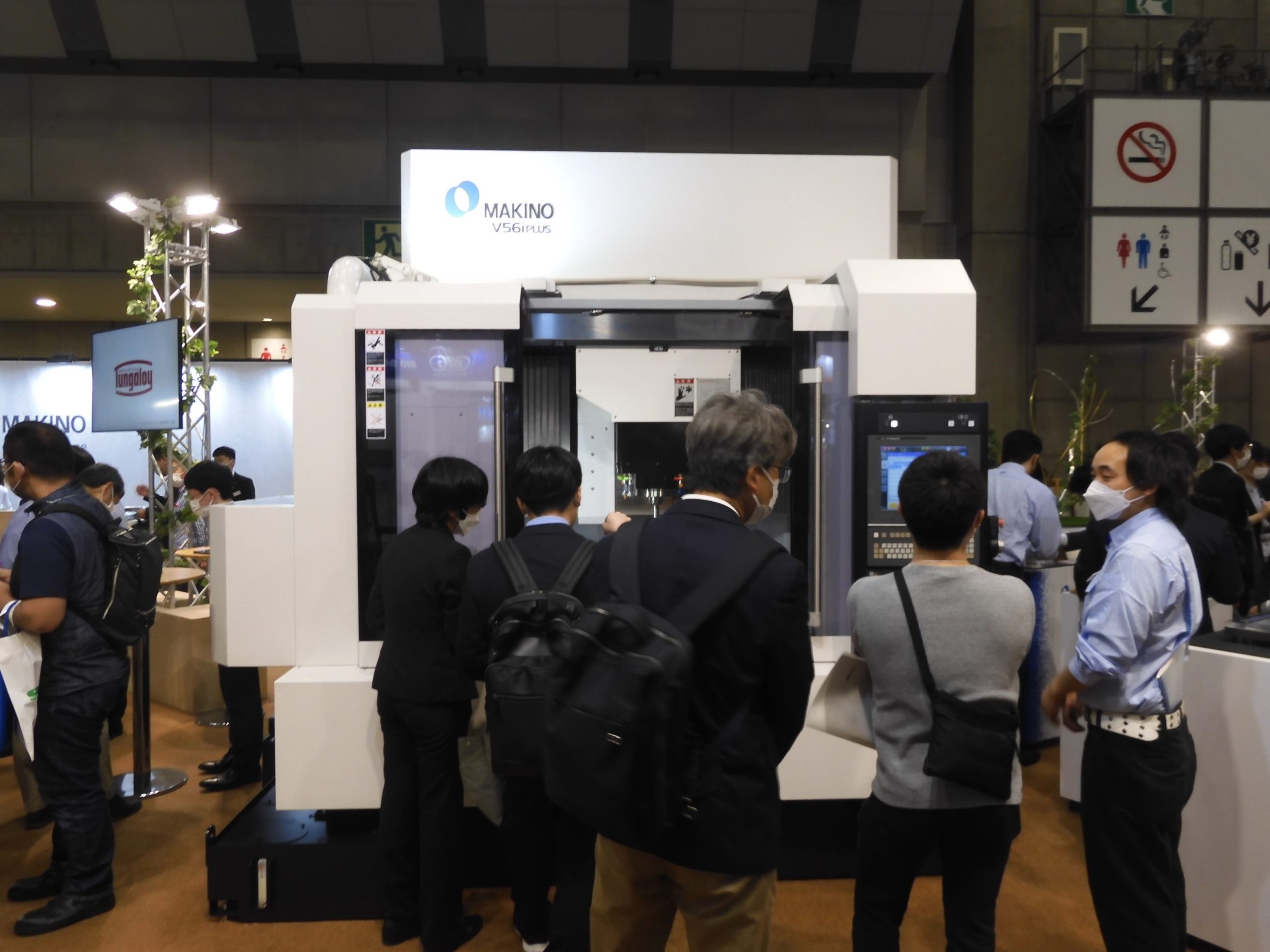 牧野フライス製作所は①立形マシニングセンタ「V56iPLUS」、②高精度ワイヤ放電加工機「UPX600」、③NC放電加工機「EDGE3i」の3台を正面に展示した。①はユーザーの工場環境温度に合わせて軸移動を最適化する「eSTABILIZER」を、またテーブル内部に温度管理された切削油を循環させて熱変位を抑制する「テーブル温度安定機能」を搭載していた。②は近年、処理速度が向上しているEDMの世界で、加工能力の向上と加工回数を少なくしても加工面が向上させる「新加工電源EW200B」と操作画面の操作性を向上させた「QV Assist」を搭載して登場。③には操作画面の構成を作業の流れに合わせた新制御装置「Hyper i」を搭載した。