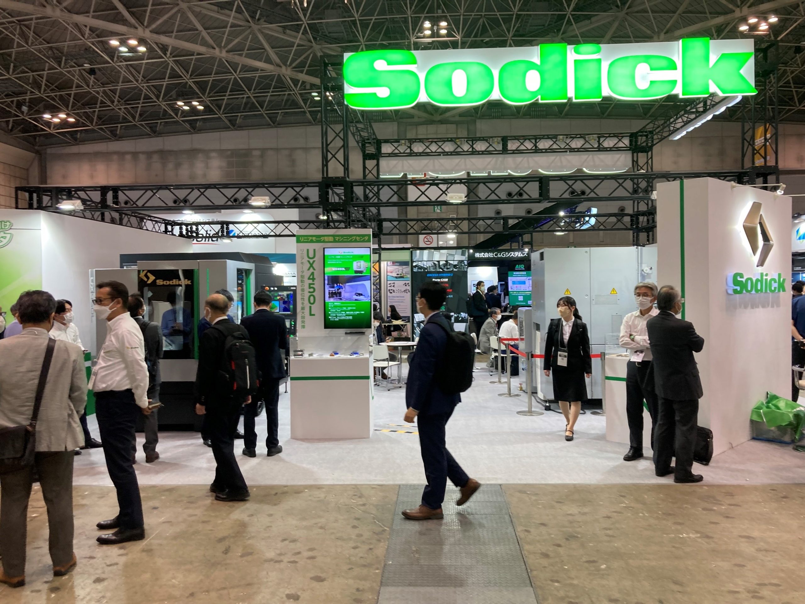 ソディックは、放電加工機から創業したが、セラミックス、切削加工機、ナノマシン、3Dプリンタ、周辺機器など守備範囲を着々と広げ、後発の食品事業部も大きく育った。今回展では、リニアモーター駆動高速・高性能ワイヤ放電加工機「ALN400G i GE」でワイヤ回転機能によるワイヤ消費量の削減、新開発のDigital HF制御は加工速度向上と加工精度向上を両立させた。さらに新開発の省エネポンプシステムは電力消費削減も実現させた。リニアモーター駆動マシニングセンタ「UX450L」は、超軽量ヘッド、高剛性門型構造、超精密ガイドで、さらなる高速化・高精度化を実現させた。