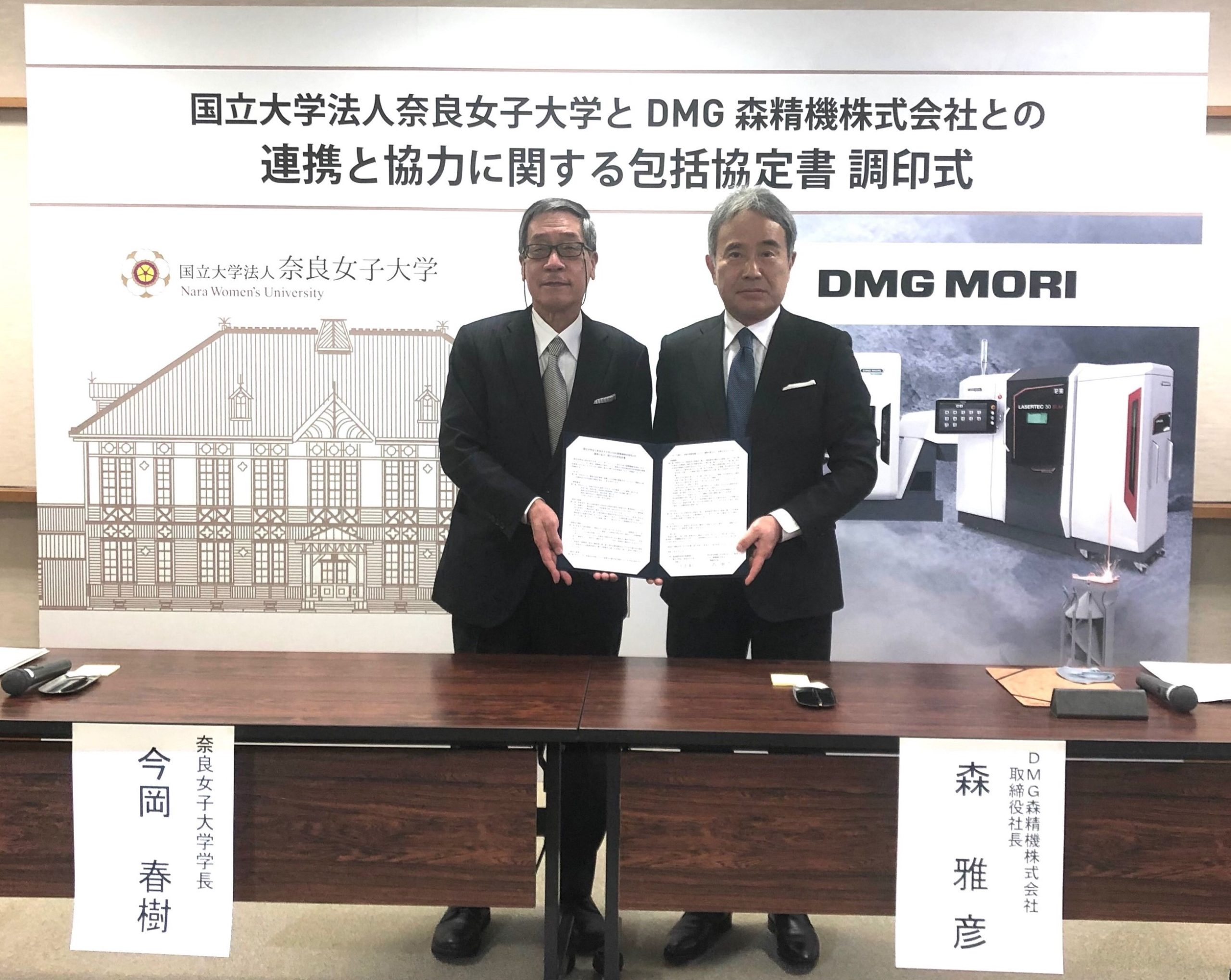 DMG森精機株式会社(以下、当社)は、国立大学法人奈良女子大学(以下、奈良女子大学)と3月1日に連携と協力に関する包括協定を締結しました。奈良女子大学 学長 今岡 春樹様と当社取締役社長 森 雅彦が出席し、調印式を行いました。