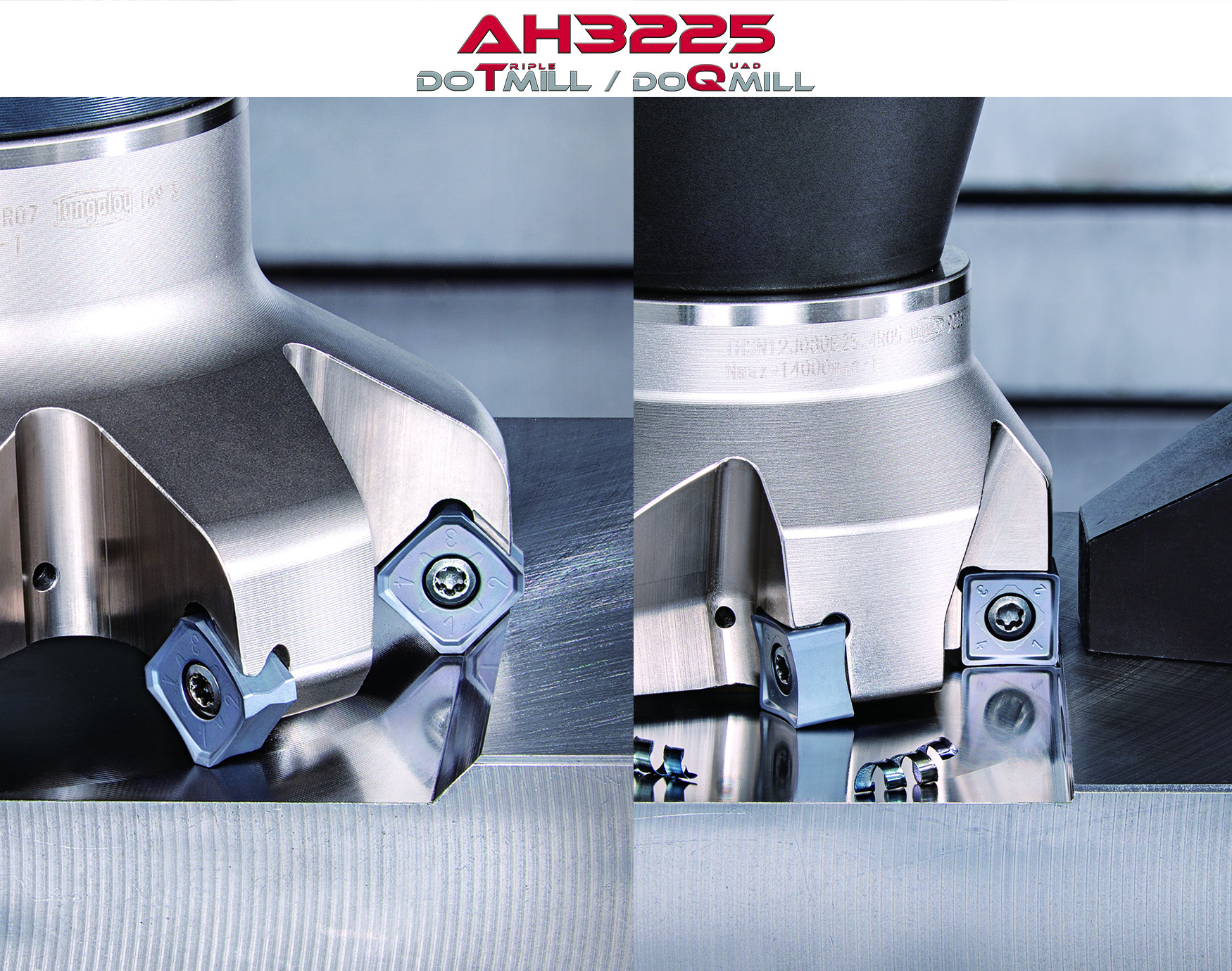 株式会社タンガロイ(社長:木下聡)は、平面加工用カッタ『DoTriple-Mill』(ドゥー・トリプル・ミル)と『DoQuad-Mill』(ドゥー・クアッド・ミル)用インサートに、鋼加工で優れた性能を示す『AH3225』材種を追加し、2022 年 5 月 23 日より全国で発売を開始します。