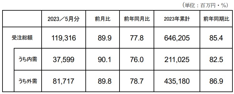 2023 年 5月分受注額(総額・内需・外需)速報