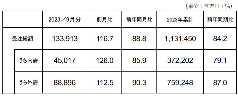 2023 年 9月分受注額(総額・内需・外需)速報