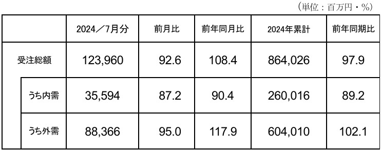 2024 年7月分受注額(総額・内需・外需)速報