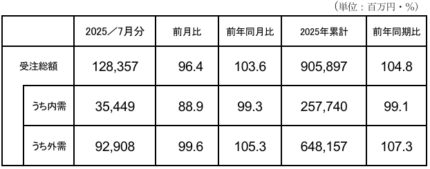 2025 年7月分受注額(総額・内需・外需)速報