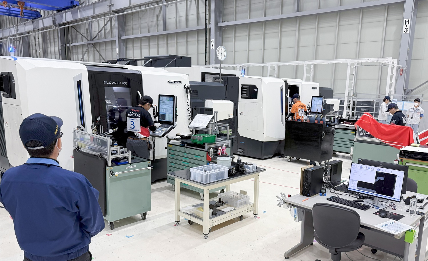 本選考会は、2026 年9月に中国・上海で開催される第 48 回技能五輪国際大会に向けて、日本代表選手を選出することを目的として実施され、選手は、与えられた図面に基づき、制限時間内に加工を完了させる必要があり、高いスキルと強い精神力が求められる。全国から選抜された7名の選手が最新鋭の工作機械を用いて高度な技能を競い合い、日頃の研鑽の成果を発揮されました。