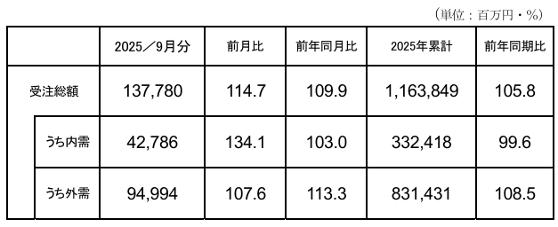 2025 年9月分受注額(総額・内需・外需)速報