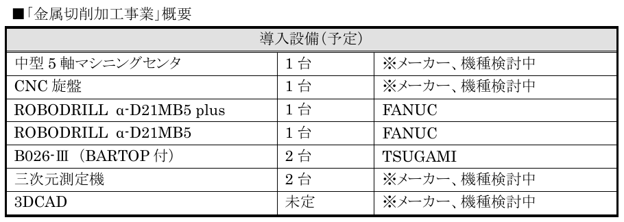 フジムラ製作所/「新規事業『切削加工部門』をスタート・新規マシン導入検討を開始」