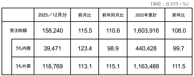 2025 年 12 月分受注額(総額・内需・外需)速報