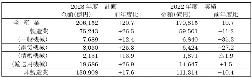 日本政策投資銀行は8月3日「2023 年度 設備投資計画調査」を発表 (資本金 10 億円以上)