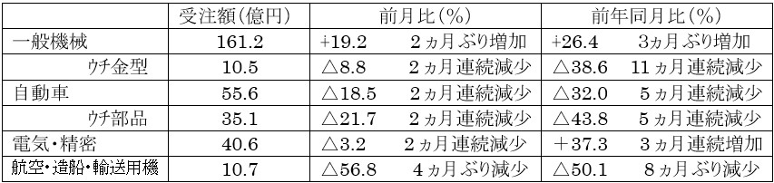 ・うち産業機械等は、2カ⽉ぶりの 150 億円超。⾦型は、5カ⽉連続の 15 億円割れ