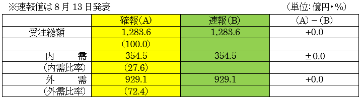 (一社)日本工作機械工業会は、8月 21 日に7月分の受注額確報値を発表した。