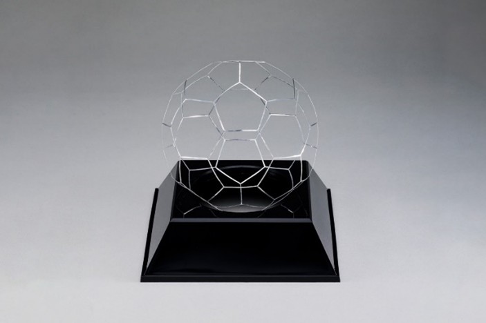 1円玉が1gだが、この作品はその4分の3しかない。形ではなく重さだけを名前にしていることにこの作品の面白さがある。薄さは 0.1 mm、幅が 0.5 mmの材料(アルミニウム)を五角形と六角形に溶接していった。歪みが出ないように全体を3分割して、それぞれがまとまってから全体を溶接した。アルミの溶接が難しいのはご存知の通り。溶接技術の高さを評価してグランプリ。